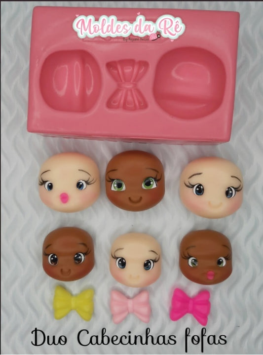 Molde de Silicon Duo Cabecinhas Fofas MDR